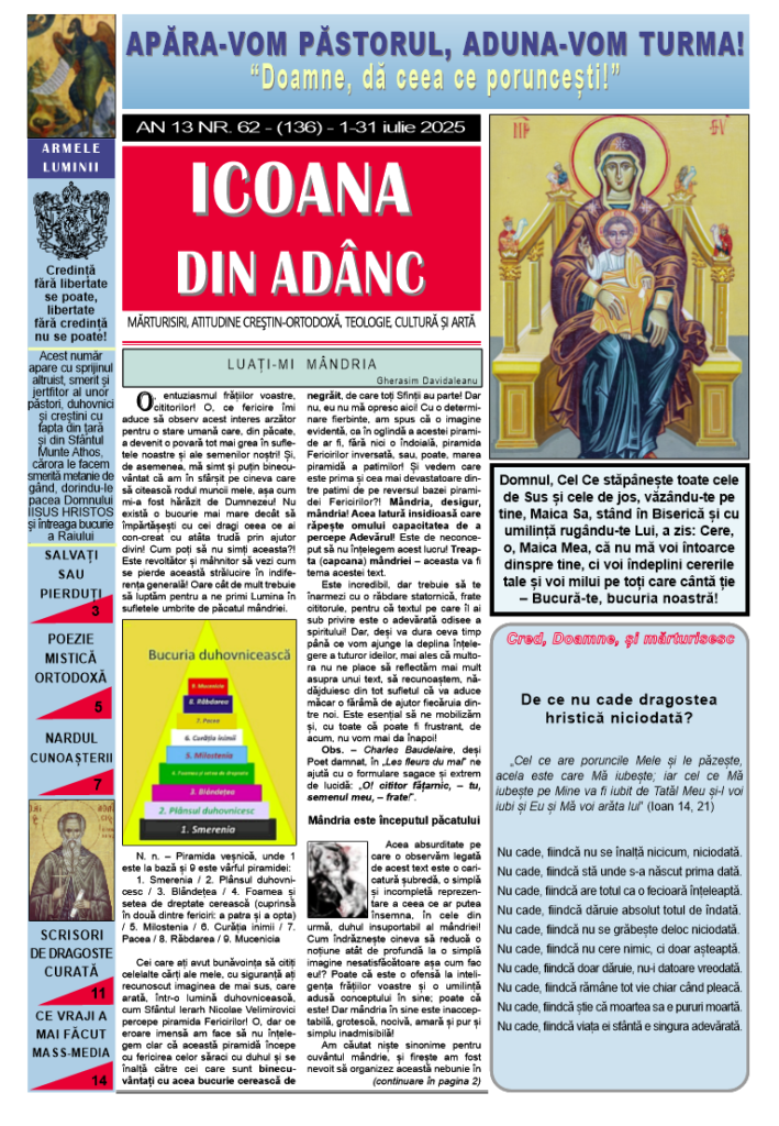 Icoana din Adânc, Nr. 62 (136) AdminSilvius 30 iunie 2025 Icoana Din Adanc 0 comentarii Navigare în articole Anterior Articolul anterior: Icoana din Adânc, Nr. 61 (135)Următor Articolul următor: Icoana din Adânc, Nr. 63 (137) Lasă un răspuns Anulează răspunsulAdresa ta de email nu va fi publicată. Câmpurile obligatorii sunt marcate cu *Comentariu * Nume * Email * Site web Salvează-mi numele, emailul și site-ul web în acest navigator pentru data viitoare când o să comentez.