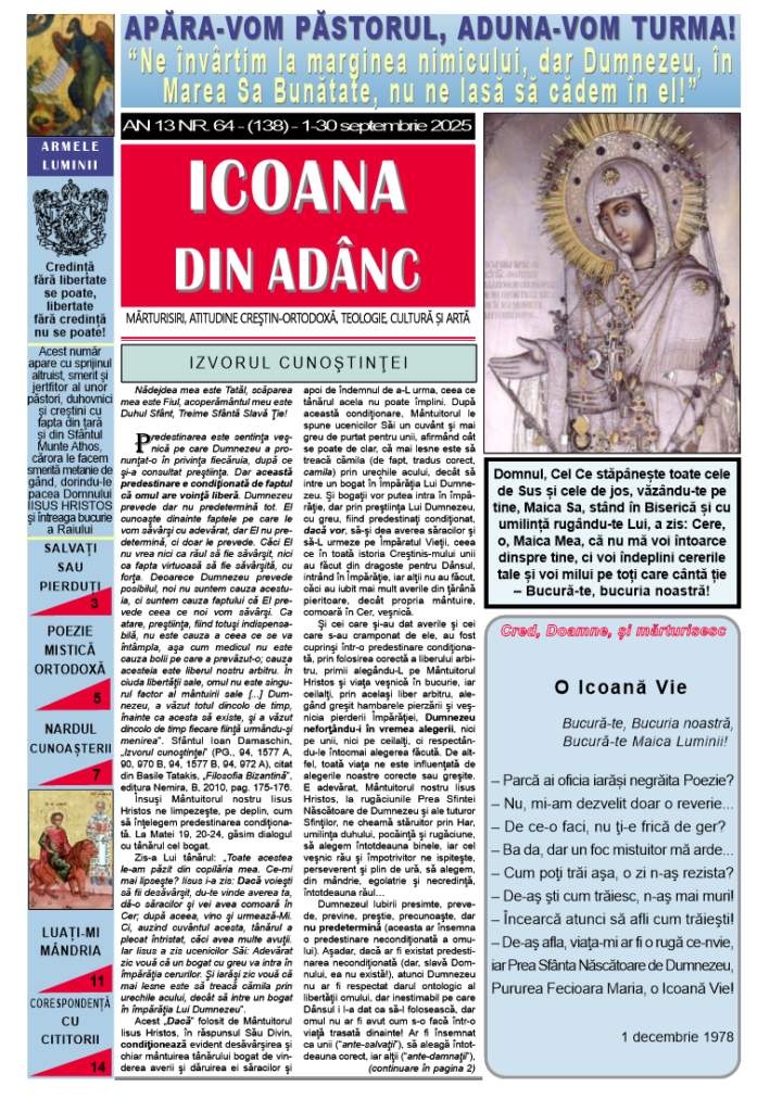 Icoana din Adânc, Nr. 64 (138) AdminSilvius 31 august 2025 Icoana Din Adanc 0 comentarii Navigare în articole Anterior Articolul anterior: Icoana din Adânc, Nr. 63 (137)Următor Articolul următor: Icoana din Adânc, Nr. 65 (139) Lasă un răspuns Anulează răspunsulAdresa ta de email nu va fi publicată. Câmpurile obligatorii sunt marcate cu *Comentariu * Nume * Email * Site web Salvează-mi numele, emailul și site-ul web în acest navigator pentru data viitoare când o să comentez.