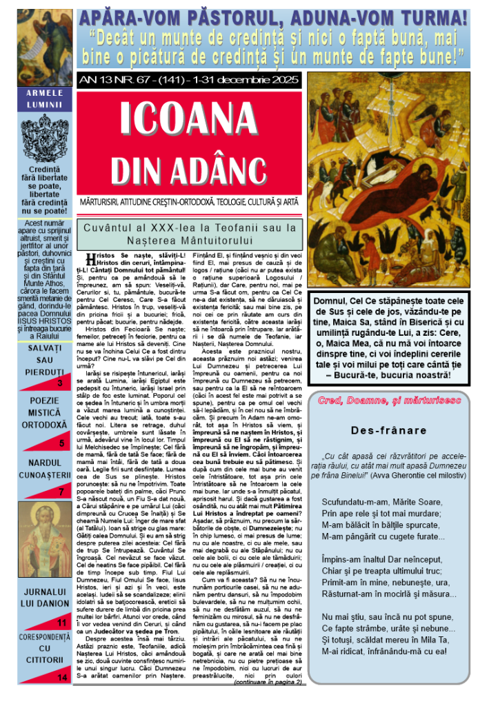 Icoana din Adânc, Nr. 67 (141) AdminSilvius 1 decembrie 2025 Icoana Din Adanc 0 comentarii Navigare în articole Anterior Articolul anterior: Icoana din Adânc, Nr. 66 (140)Următor Articolul următor: Icoana din Adânc, Nr. 68 (142) Lasă un răspuns Anulează răspunsulAdresa ta de email nu va fi publicată. Câmpurile obligatorii sunt marcate cu *Comentariu * Nume * Email * Site web Salvează-mi numele, emailul și site-ul web în acest navigator pentru data viitoare când o să comentez.