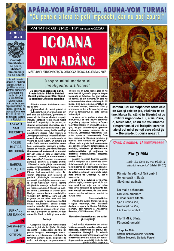 Icoana din Adânc, Nr. 68 (142) AdminSilvius 31 decembrie 2025 Icoana Din Adanc 0 comentarii Navigare în articole Anterior Articolul anterior: Icoana din Adânc, Nr. 67 (141)Următor Articolul următor: Icoana din Adânc, Nr. 69 (143) Lasă un răspuns Anulează răspunsulAdresa ta de email nu va fi publicată. Câmpurile obligatorii sunt marcate cu *Comentariu * Nume * Email * Site web Salvează-mi numele, emailul și site-ul web în acest navigator pentru data viitoare când o să comentez.